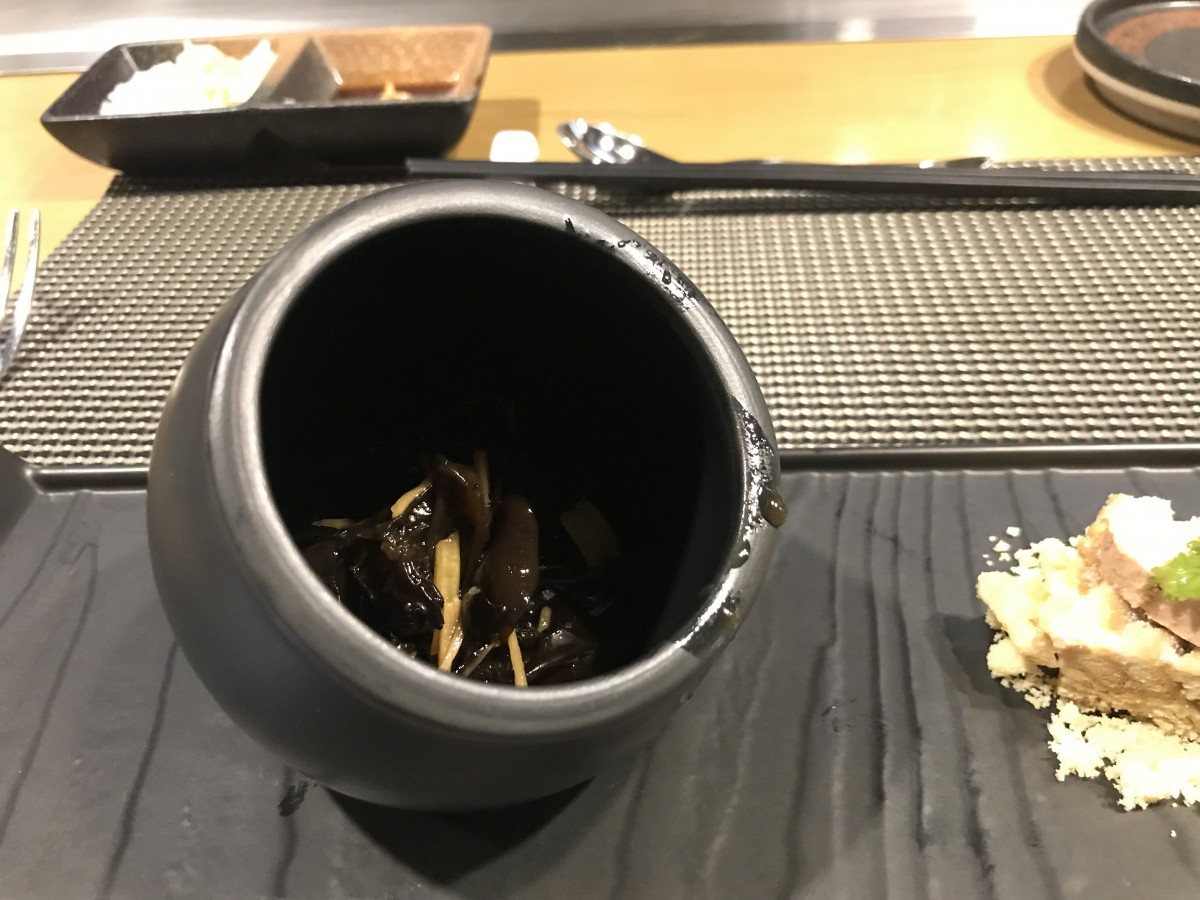這是前菜,醃漬過的海帶芽