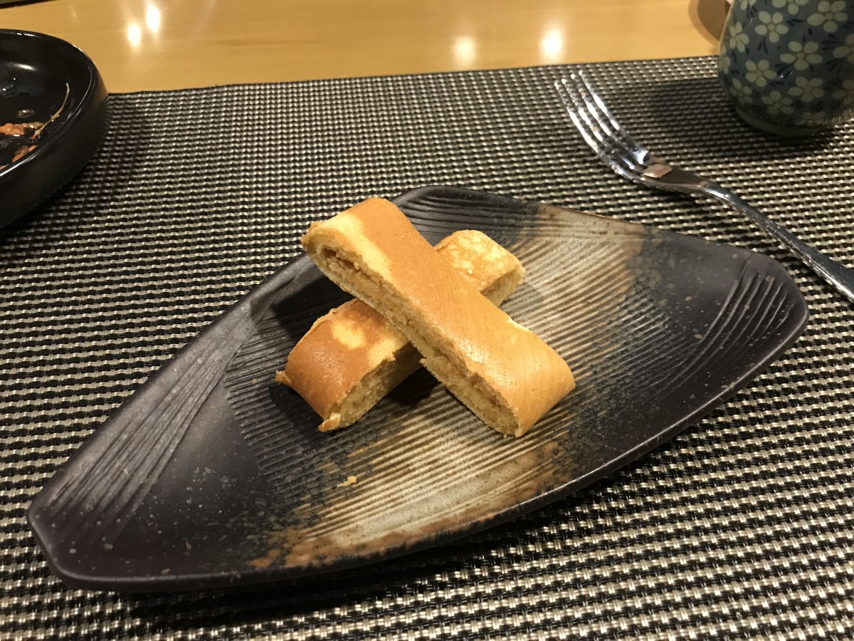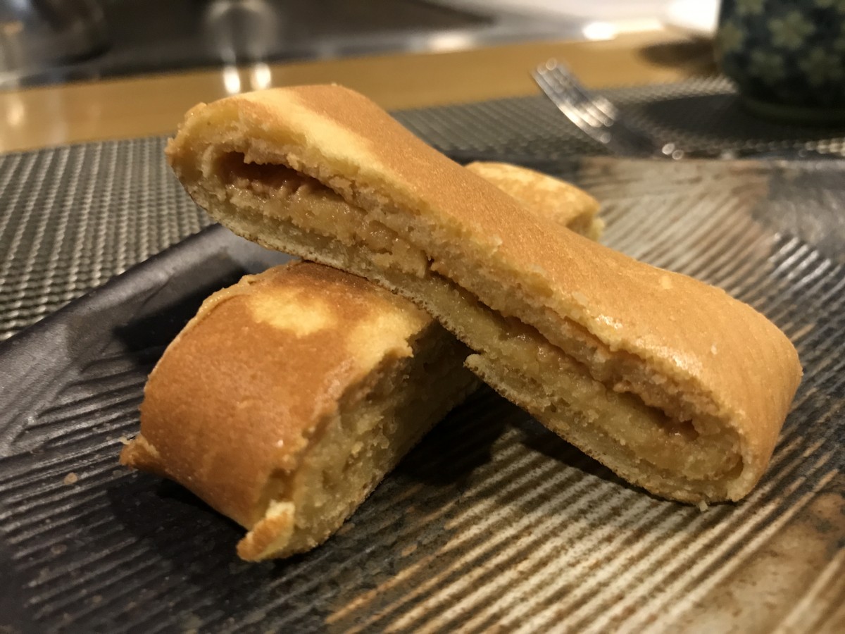 師傅用鐵板做了一個類似銅鑼燒的甜點