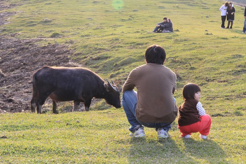 就有小孩跟爸爸在研究這頭牛 好不好吃
