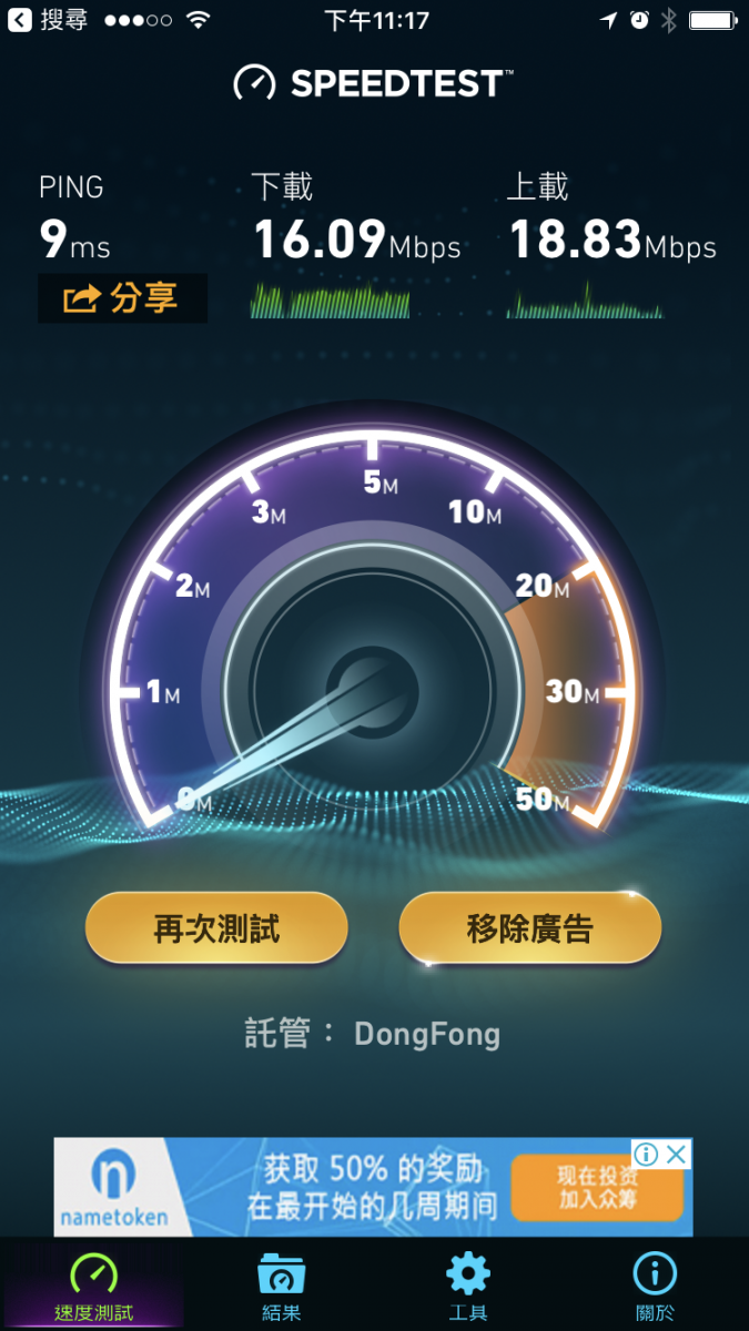 基本上比原本的速度快了約10Mbps有,Ping也快了