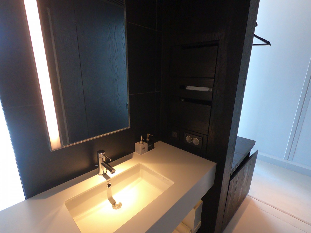 在洗手台的右邊有很多隱藏櫃子
