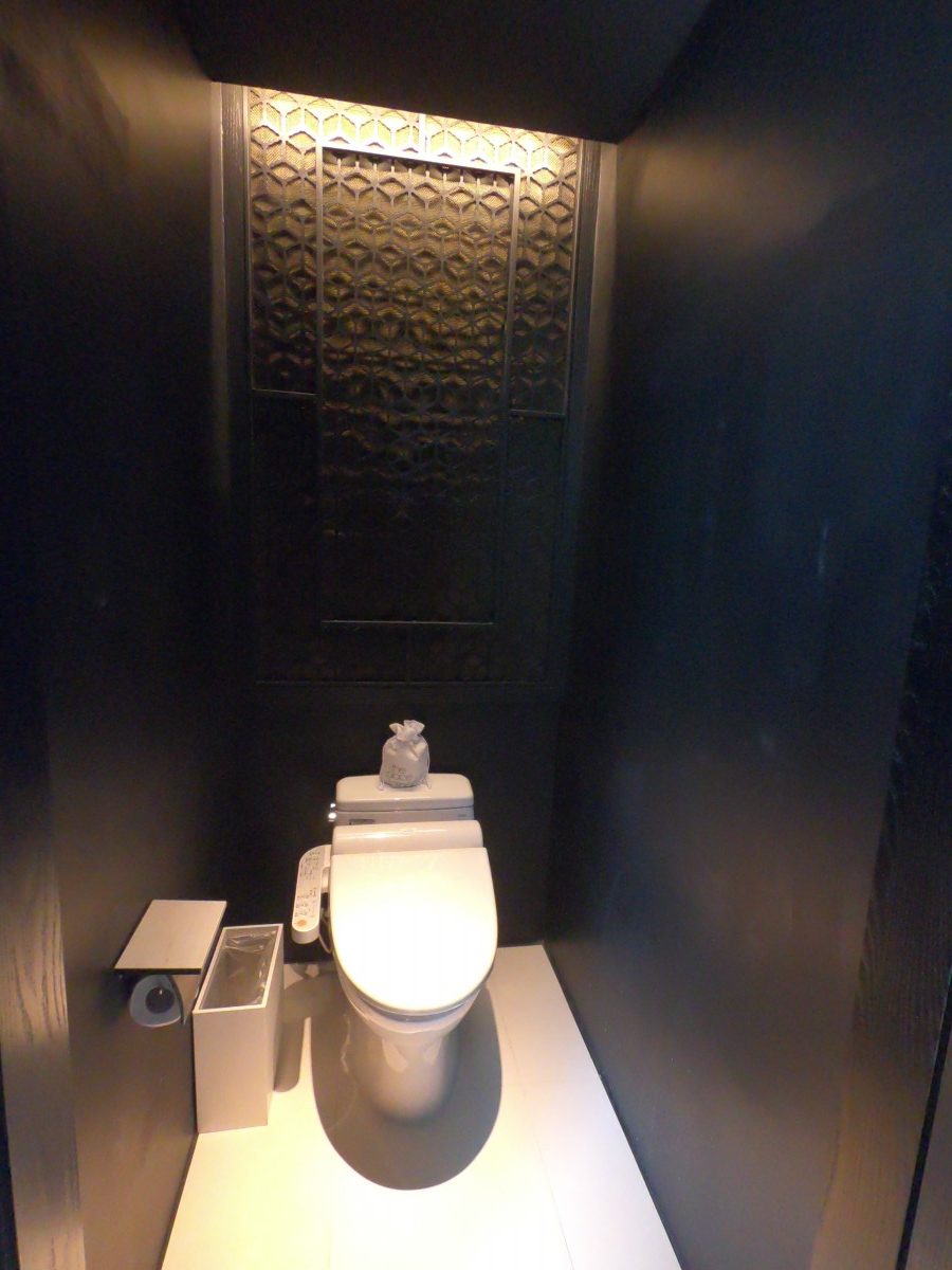 廁所也有同一系列的格紋,還有神聖的打光效果
