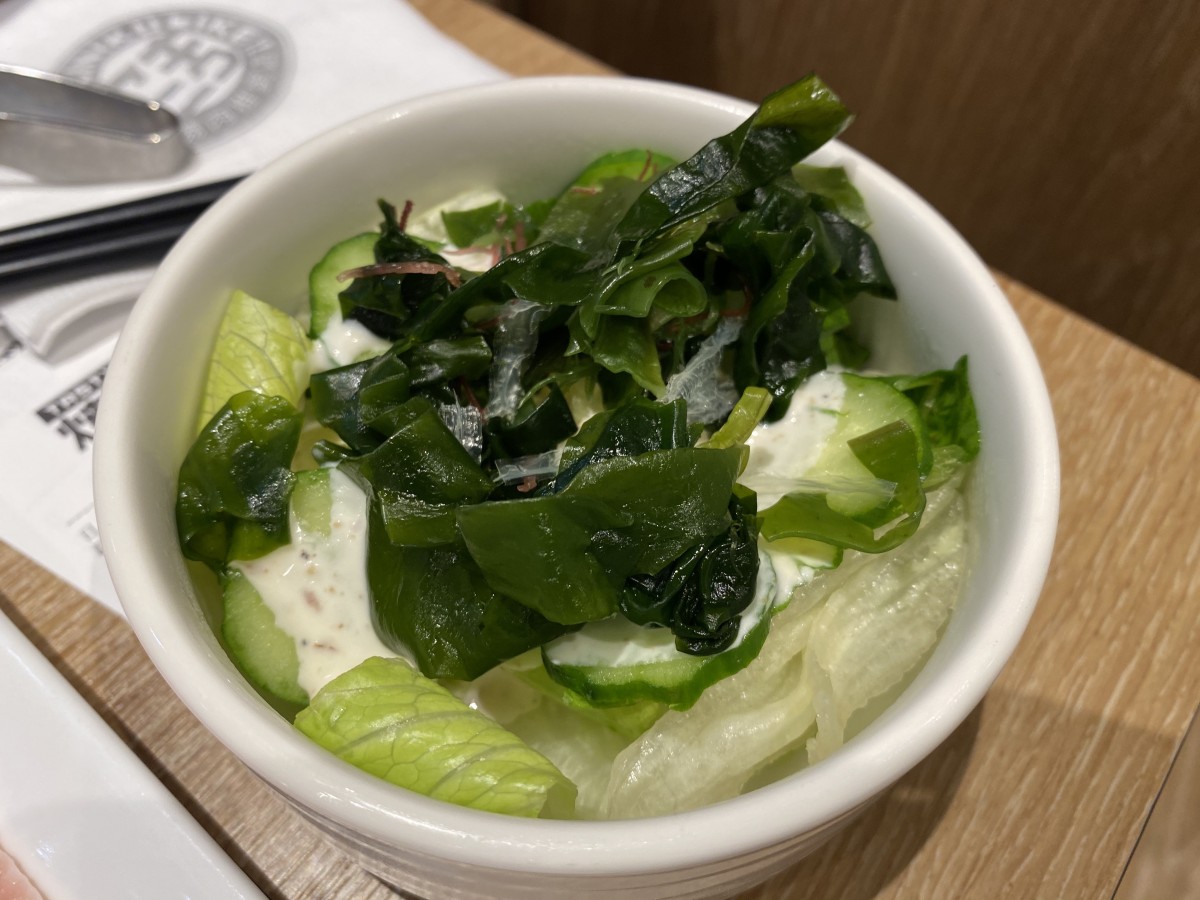 搭配海帶跟凱薩醬的沙拉,海帶的鹹味跟凱薩醬搭配在一起,非常清爽解膩,真的很好吃