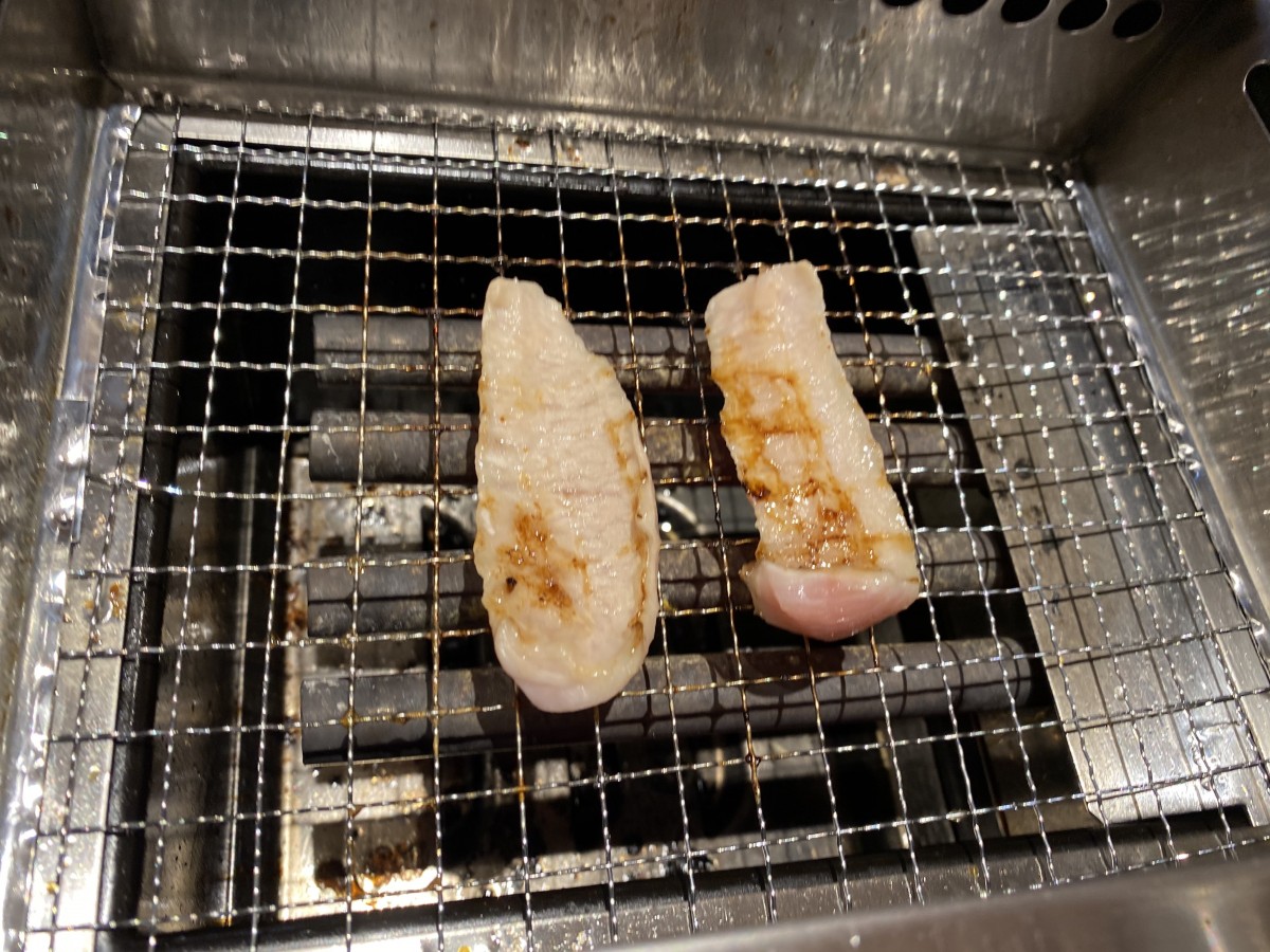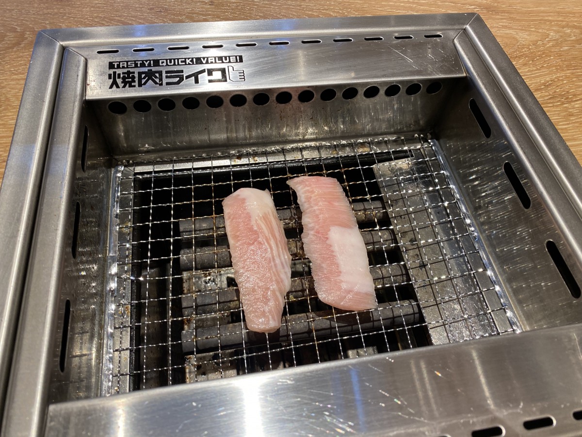 牛五花有醃過,厚度加上這個爐子的溫度剛剛好,不太會烤焦,香氣十足